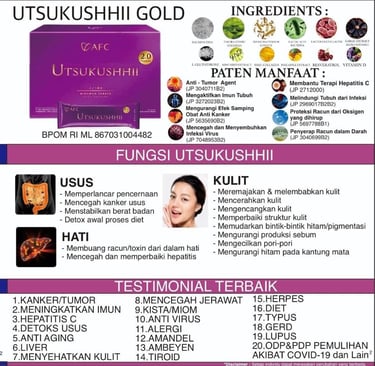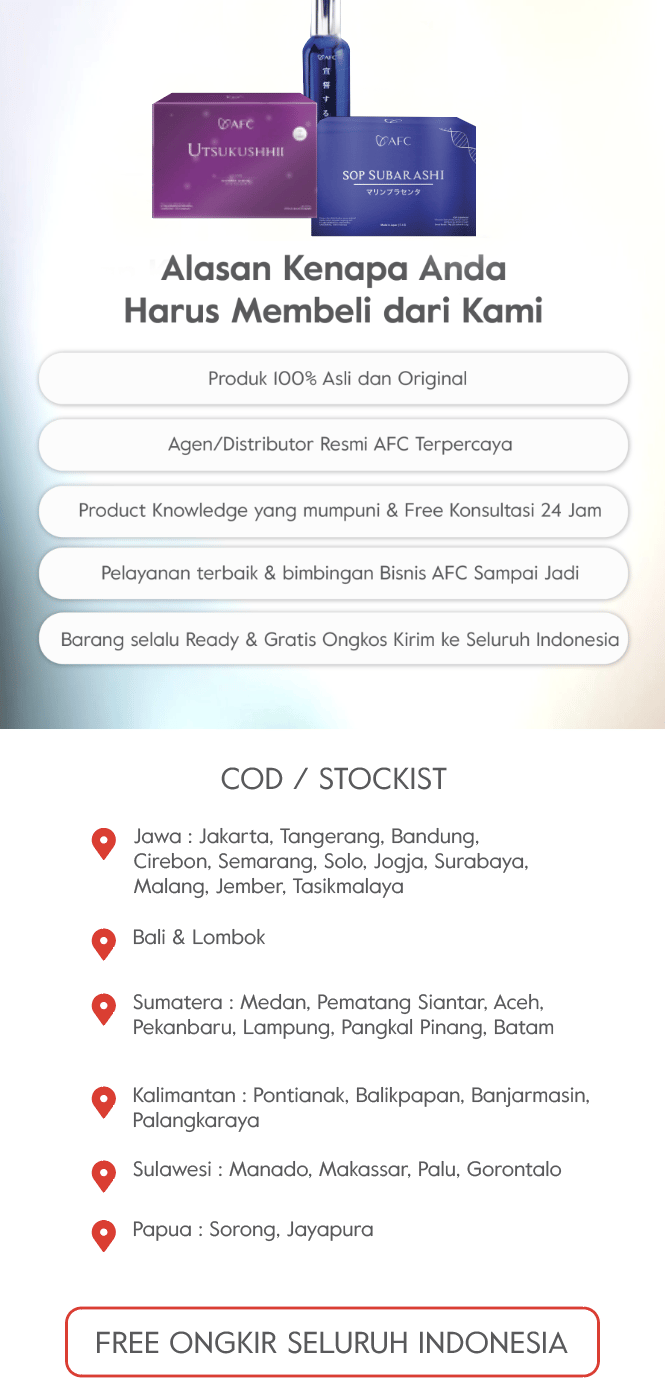 Karena produk AFC adalah produk farmasi non-kimia yang telah memiliki PATEN resmi.Artinya, kualitas dan manfaatnya terjamin — dan Anda bisa merasakan hasil nyata saat rutin mengonsumsinya.